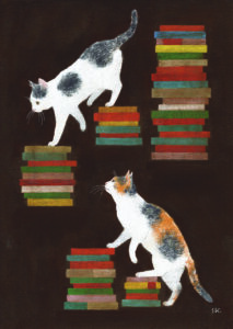 そして、1月末は、冒頭でも触れましたが、ひるねこBOOKSさんで開催された『ひるねこBOOKS 10周年記念展 Part.2』に参加させていただきました。改めてひるねこさん10周年おめでとうございました!です! 年末のキャッツミャウブックスさんでの黒猫をテーマにした展示とはまた変わって、こちらはひるねこBOOKさんや谷中、本にまつわるものがテーマの作品だったので、わたしは久しぶりに黒猫から離れて白猫やぶち猫を描きました。(画像載せますね)