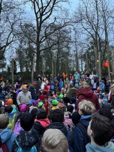 学校にやってくる日はピートの仮装をしてみんな外に出てお迎えします。