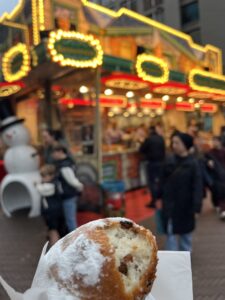 あと冬の定番はオリボーレンという丸いドーナツみたいなのが定番で屋台が駅前とか街のあちこちに出現して、その場で熱々のを食べるのが大変美味しいです(個人的にはオリボーレンの方が好きです)。