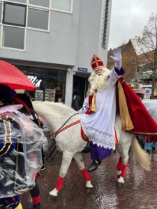 シンタクラース。馬に乗って上陸後はパレードします。